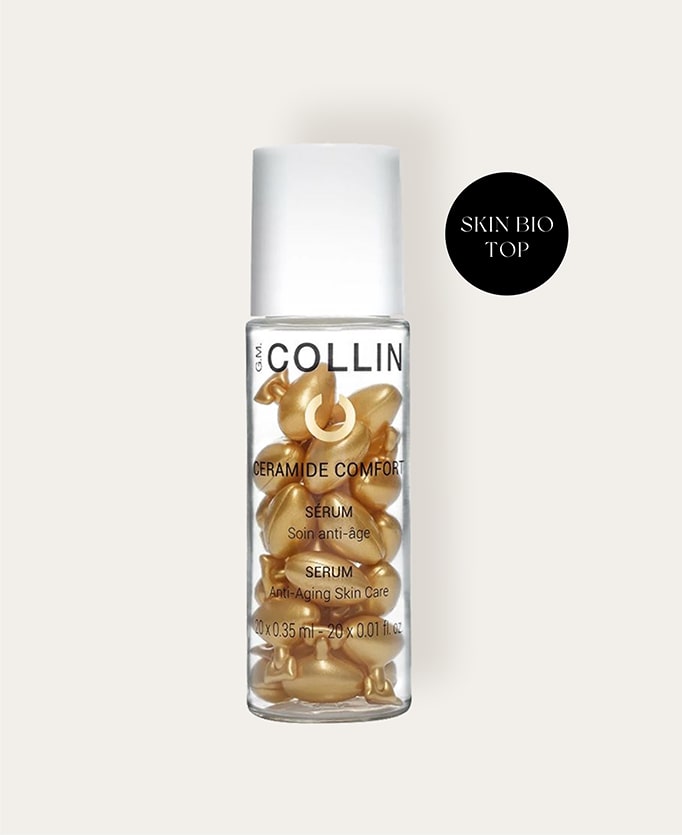 Patiriamą aplinkos poveikį, senėjimo požymius sumažinkite į odos priežiūros rutiną įtraukiant atstatančias serumo kapsules su keramidais, kurie maitina ir stabdo drėgmės netekimą. Naudokite ryte ar vakare, kuomet naudojate kaukes.